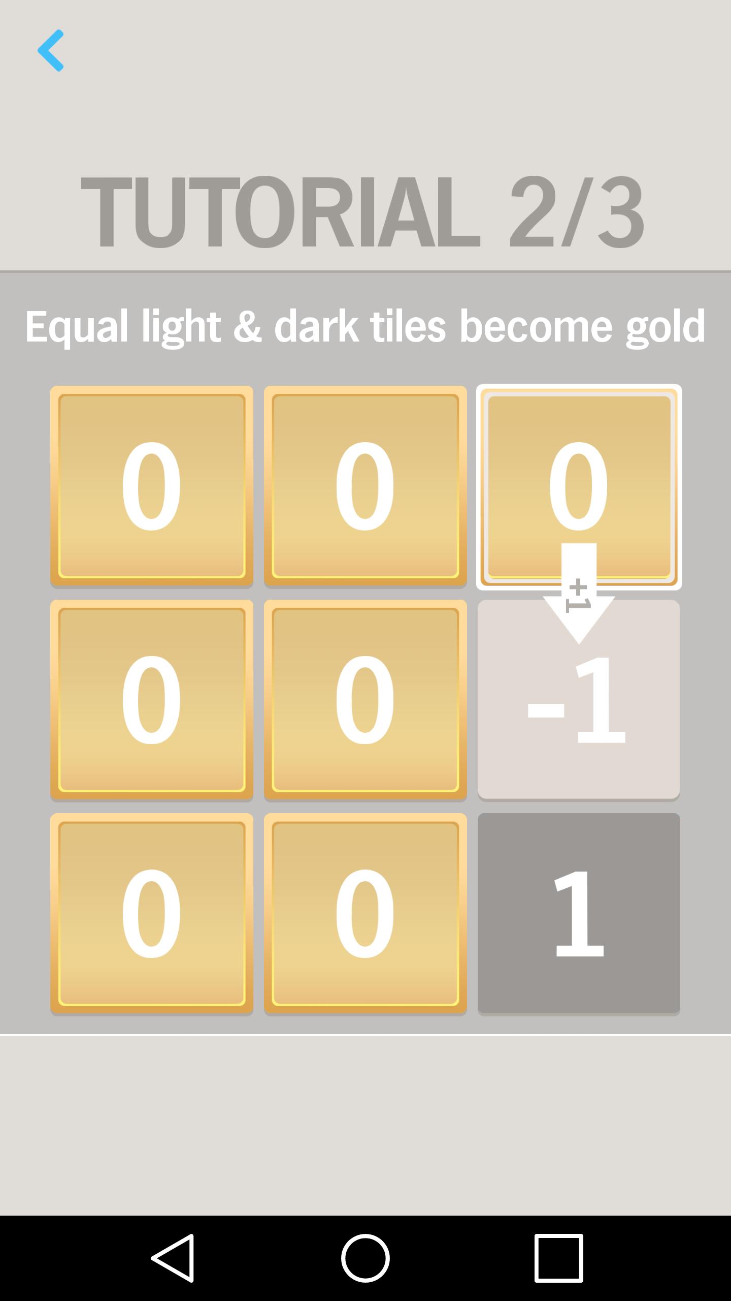 Remember, dark tiles decrease rather than increase. Equal light and dark tiles become gold. To win, you must turn whole board to gold!
