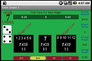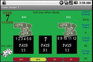 Over Under 7 is a very simple dice game where players can test their skills against lady luck. The game consists of 3 basic wagers on the outcome of a roll of dice. Players wager on whether the total of the dice rolled will be over, under or 7 exactly. Payouts of under or over 7 wagers are 1:1,a wager on 7 exactly pays 5:1