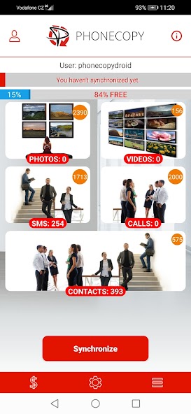 - Android app currently synchronize contacts, SMS, photos and videos and backup call log