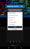 PianoPlay: JUSTIN is an unofficial fan application. It is not affiliated with or endorsed by Justin Bieber, his management, or his record label. This app does not include any copyrighted material. The piano melodies are arranged with individual piano notes, and the renditions of these songs are original and created by FanFUN. For educational and entertainment purposes only.