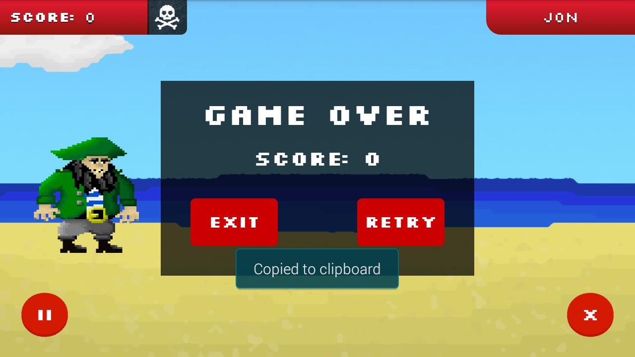 Simple and cosy game, your goal is to survive from the flying objects that come at you without you knowing which is evil which good. The good ones when brought down bring you negative points, the evil ones when put down you save the Pirate from the death kick! Use the Pirate canons that he carries with him as weapon put the flying objects down!