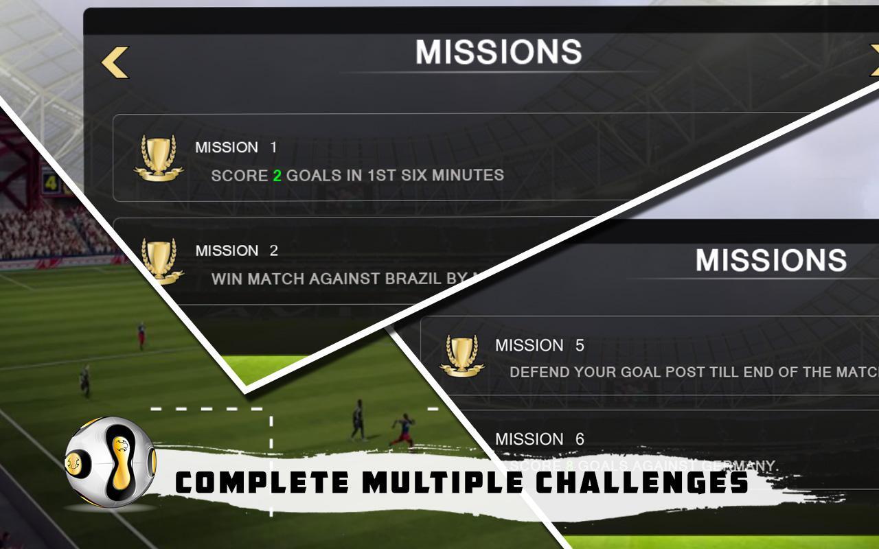 Most popular teams are at your fingertips. Play with your favorite national team: Brazil, Spain, France, England, Italy, Germany, USA, Indonesia, Uruguay, Argentina, Bahrain, Portugal, Algeria, Austria, and Turkey etc. and become the winning eleven