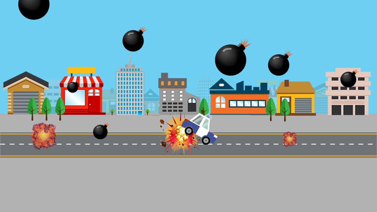 The game-play is very simple, the only thing you have to to is: touch and drag to drive in order to avoid the falling bomb!!!