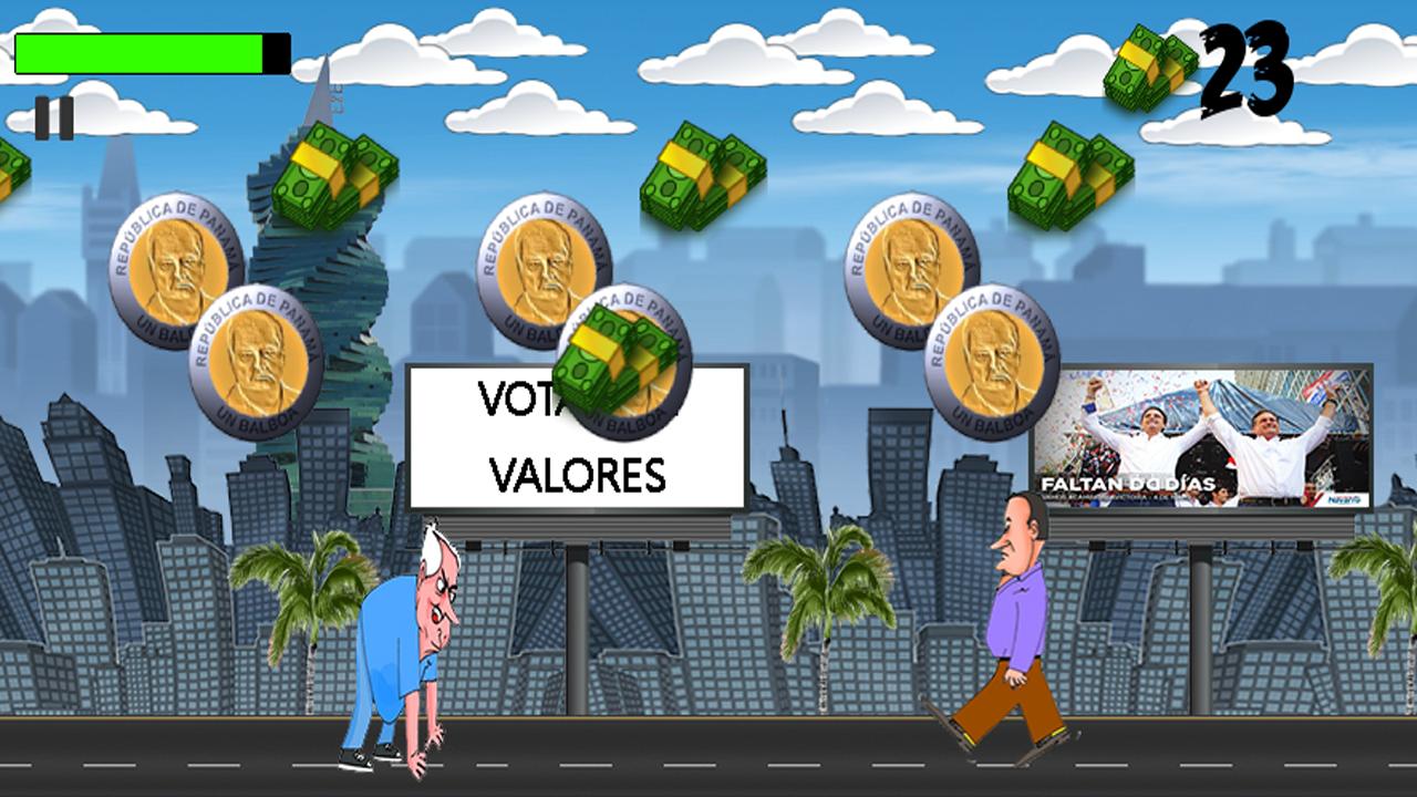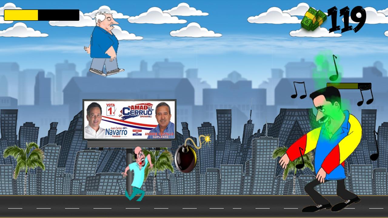 Support Mentirelli in his own application for mobile Phones ! Join Mentirelli in Political Warfare , a running game loaded with action that take your speed and reflexesto the limit. It is based on the famous people of Panamanian Politics, is a 100 % Panamanian application created by Amazian Team.