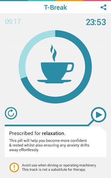 A pílula de relaxamento, 't-break', é gratuita e é pré-carregada para que você possa ver resultados reais em menos de 20 minutos.