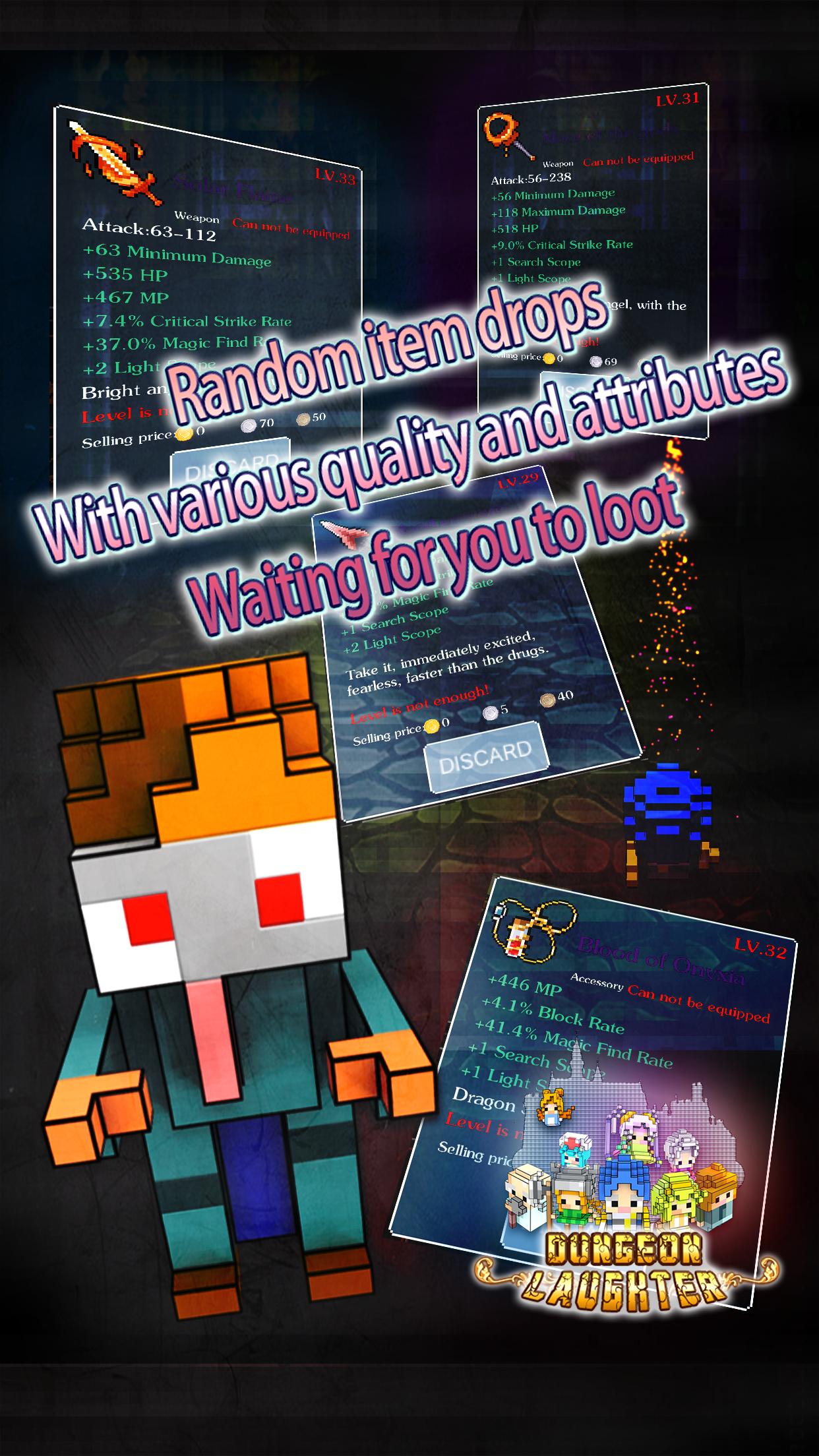 " Dungeon Laughter " é um jogo 3D de roguelike não padrão com geração de mapa aleatória, sistema de geração de adereços aleatórios, que cria um ambiente de masmorra extremamente em mudança. Haverá seis níveis e dezenas de monstros esperando o aventureiro desafiar.