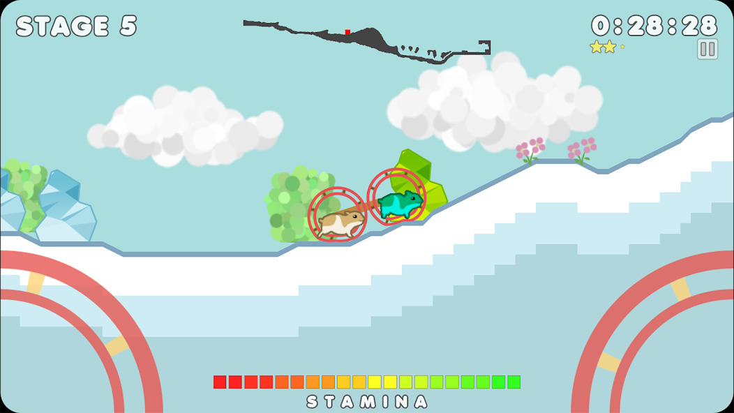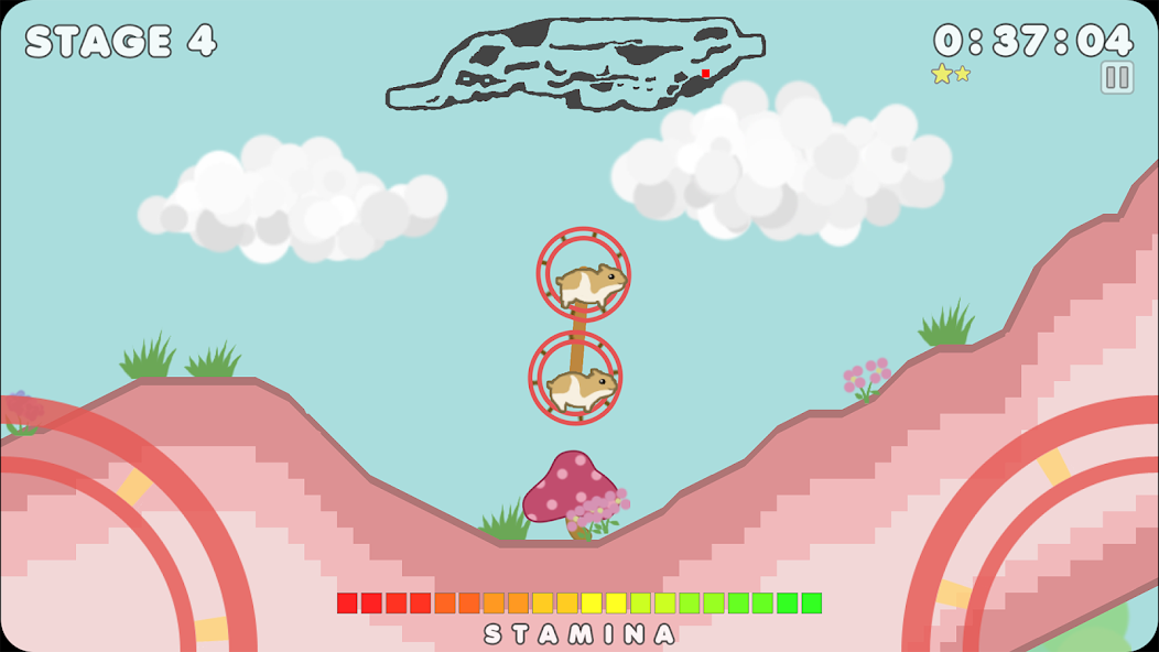 Jogo de corrida giratório de Hamsters. Mantenha dois hamsters correndo no volante para alcançar a meta.
