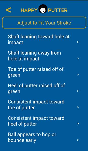Os golfistas profissionais têm putters ajustáveis há décadas, mas nunca os consumidores - até agora. O Happy Putter permite acesso regular aos golfistas a uma tecnologia comprovada da turnê e lhes dá a capacidade de ajustar seus putters para combinar com suas tendências de derrame e mudanças nas condições de jogo. Este aplicativo é o guia de ajuste do consumidor, explicando como o ajuste pode ajudar a melhorar a colocação, como fazer alterações no putter feliz e quando você deve fazer essas alterações. :) putt feliz
