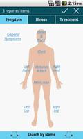 • Inclui centenas de sintomas (qual é a questão, onde dói, sentimento geral, febre, apetite, condições da pele e muito mais) e doenças comuns, todas cuidadosamente coletadas com o conselho de médicos e farmacêuticos. Pesquise ou escolha pela região do corpo. Além disso, você pode adicionar manualmente qualquer informação que se preocupe