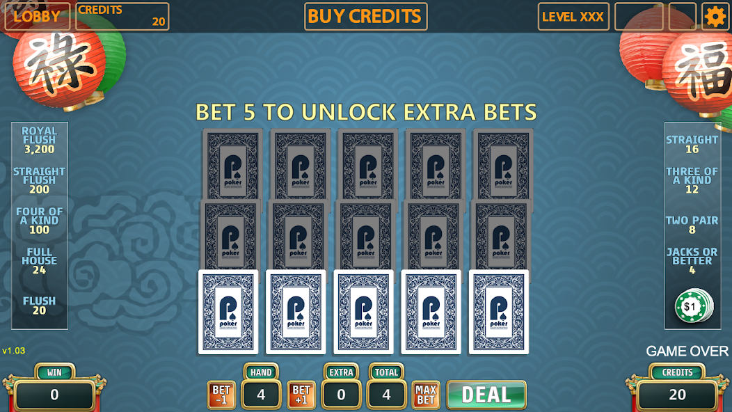 Experimente o vídeo de vídeo clássico com um toque. Você pode apostar em até dois cartões de substituição adicionais para cada cartão na sua mão. Com até dez cartas extras em jogo, este jogo de poker em ritmo acelerado oferece maneiras adicionais de ganhar e opções mais estratégicas para testar sua habilidade. Se você é um jogador de video de vídeo baseado em habilidades, você vai adorar este jogo.