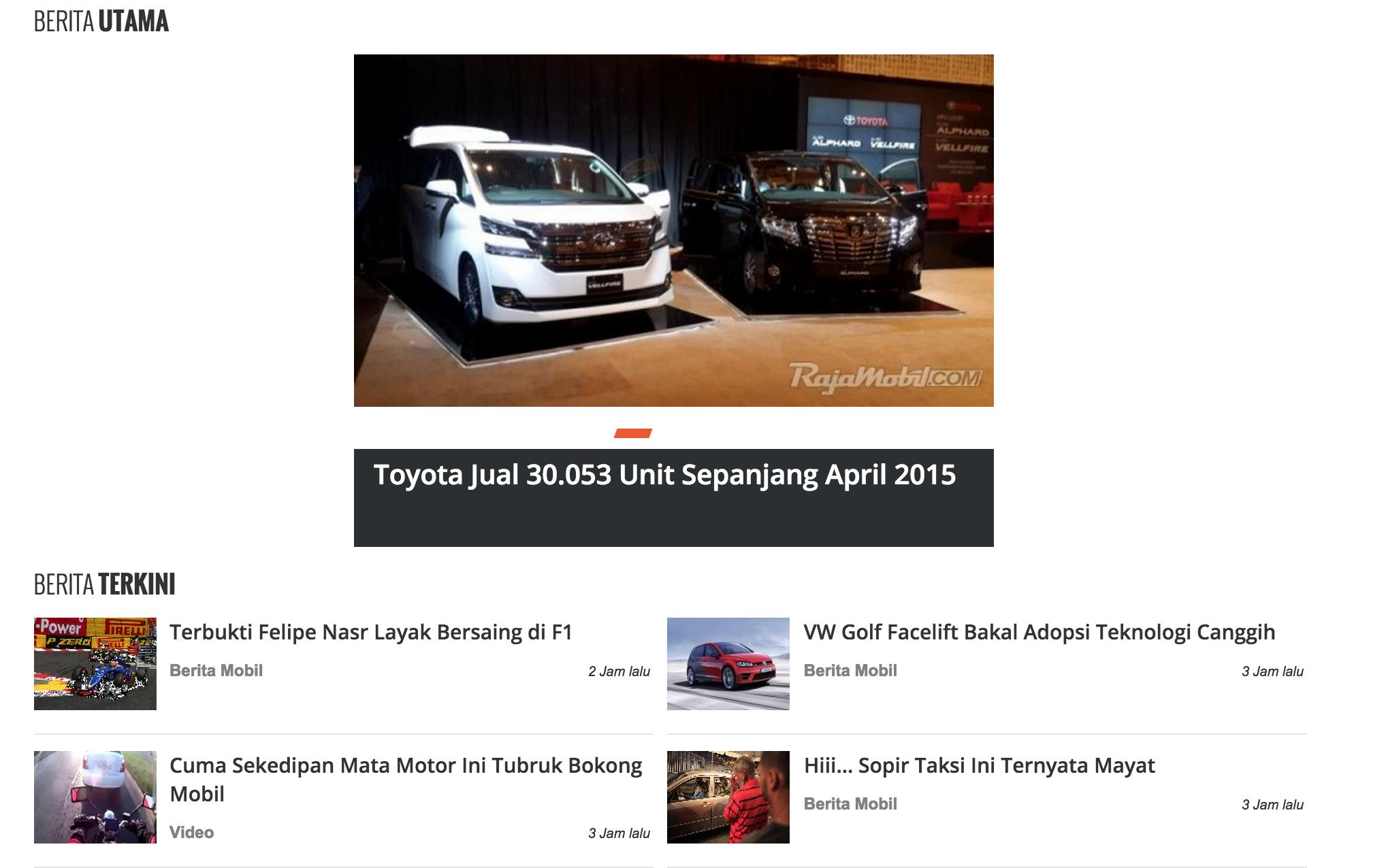 RajaMobil.com also presents news including the latest cars, car modification, business and automotive industry, automotive sports, vehicle components, and car community activities. Everything is presented not only in text and photo formats, but also video.