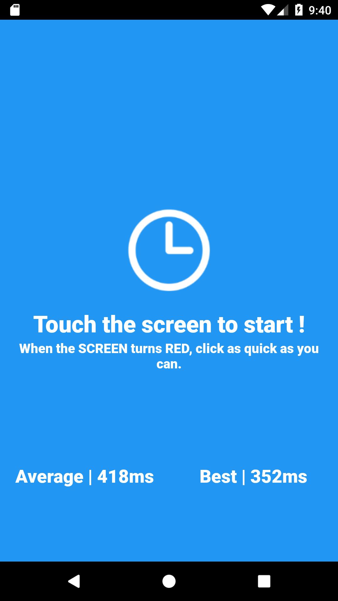3. The app will show you how much time it took for you to react on red screen and click on it.