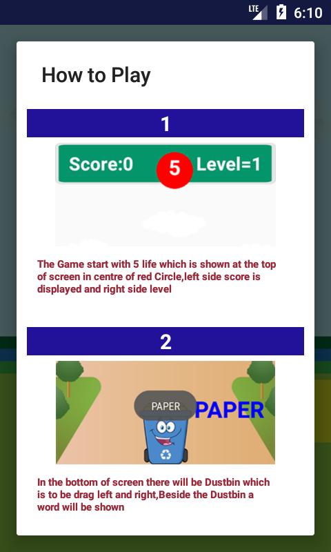 (4) If the dustbin catch or pick the Paper which is having alphabet other then alphabet of word in sequence then your 1 life would be decrease which will be shown at top inside red circle.
