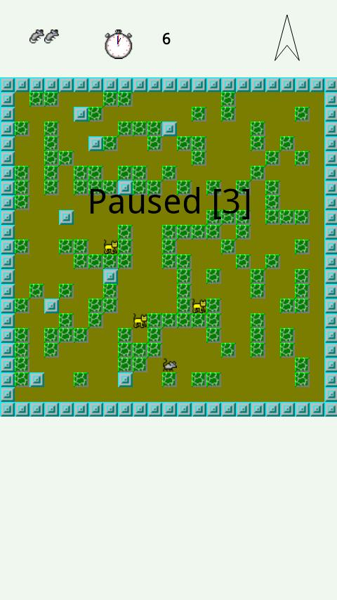 The classic cat and mouse rivalry game play you may remember from the 90s, including diagonal moves. No buttons, just swipe the touch screen to move the rodent, in your quest to surround a set of relentless and aggressive cats by means of movable bush like game pieces! (Physical keyboard also supported) It is a subset of the game Rodent's Vengeance for Android and is intended to give the user an opportunity to try out its shared eight direction touch screen swipe interface. The touch interface does require practice and discipline, but I believe that not having to constantly look down at screen buttons or keyboard makes it the best possible option for supporting diagonal moves.