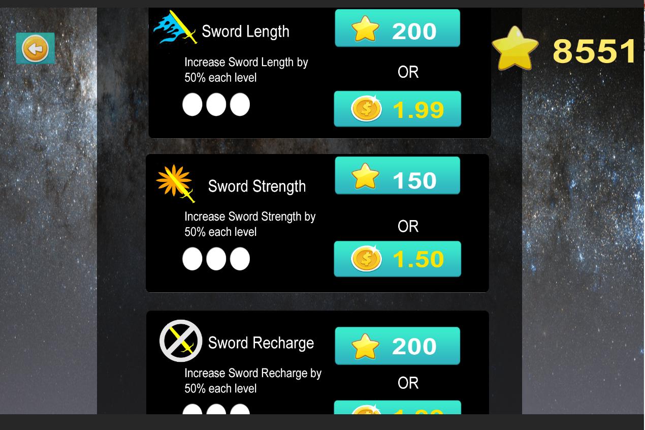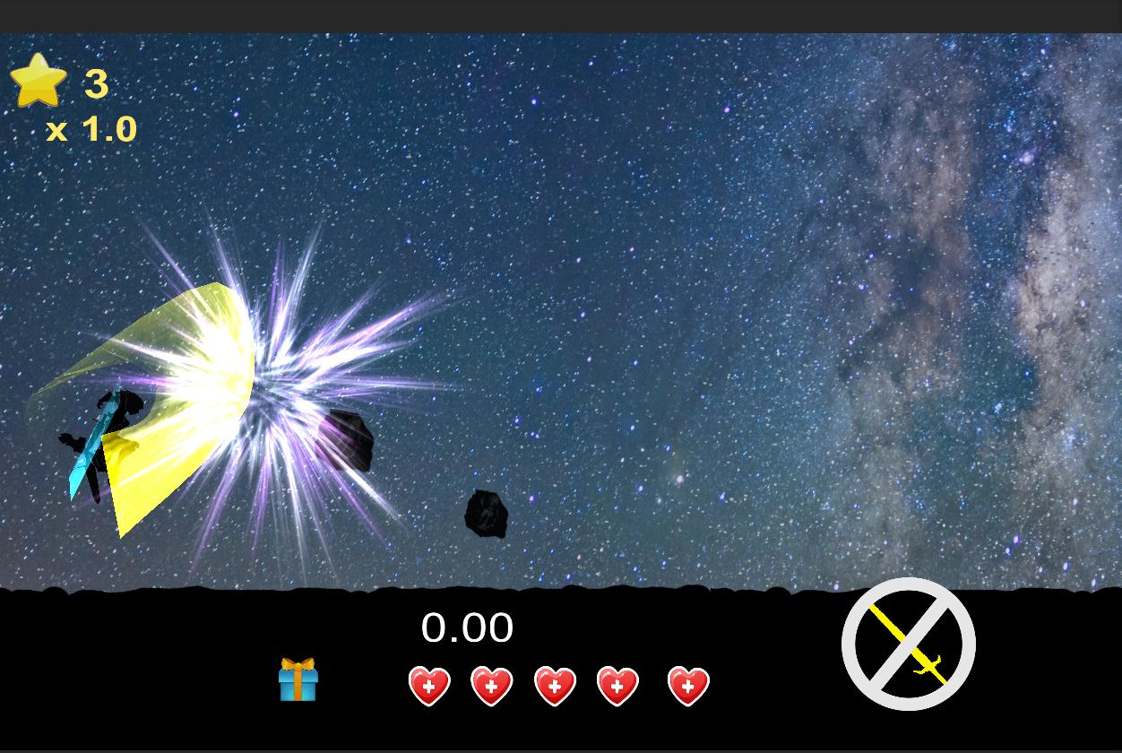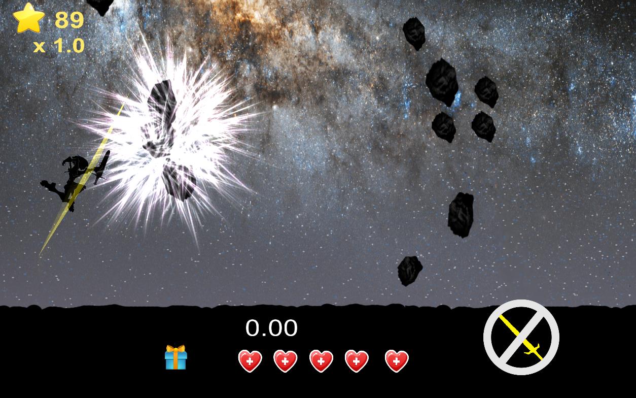 Smash asteroids with your sword and send them crashing into each other. Each object has its own dynamic and fun physics.