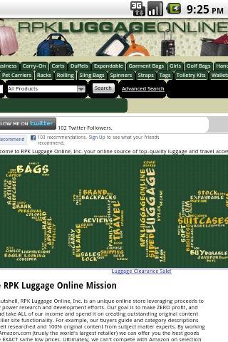 RPK Luggage Online, Inc. carries brands available for men, women, and kids; Adidas, American Tourister, Eddie Bauer, JanSport, Kathy Van Zeeland, Kenneth Cole, Liz Claiborne, Pierre Cardin, Rick Steves, Samsonite, Timberland. Also backpacks, briefcases, duffels, handbags, pet carriers, sling bags, wallets, wheeled bags.- Updated fix to handle orientation changes and orientation change error when a progress dialog is visible.