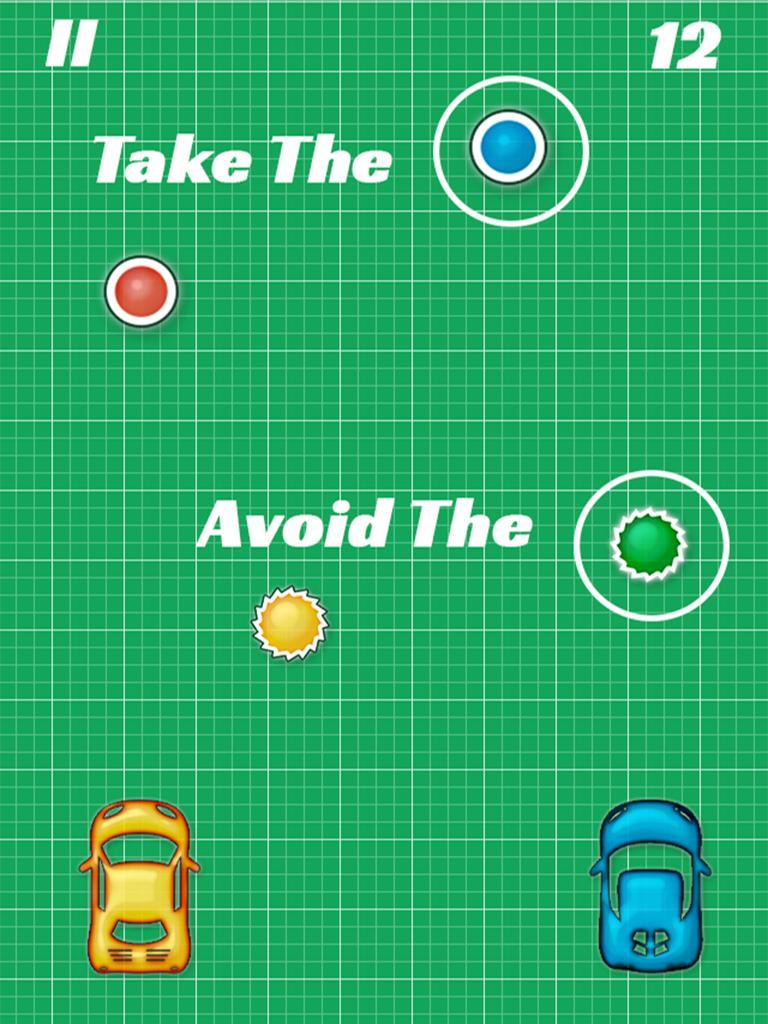 Управляйте своими двумя автомобилями. Проводите круг и возьмите квадрат, чтобы сделать результаты.