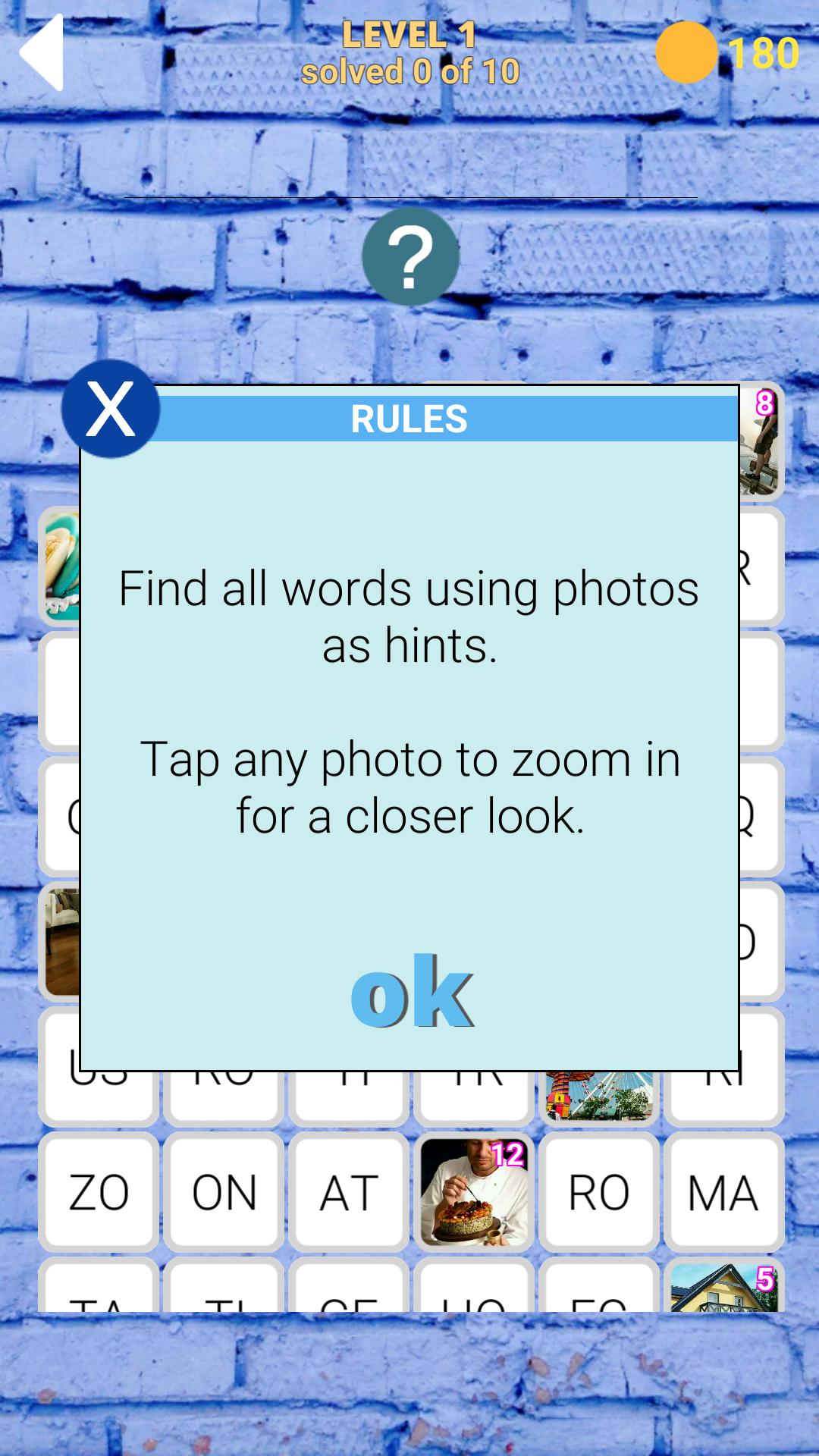 Игровой процесс разделен на два типа, каждый уровень состоит из двадцати слов, уроки игры разделены на фотографии, а ответы на них, которые разбиты на слоги, ваша задача - посмотреть на фотографию, чтобы угадать и составить слово из слогов, когда вы нажимаете на любую фотографию, изображение может быть увеличено. Эта замечательная игра была создана, чтобы играть в компании друзей, семьи и друзей. Играйте в своем выборе в: английский, французский, немецкий, русский, итальянский и португальский.