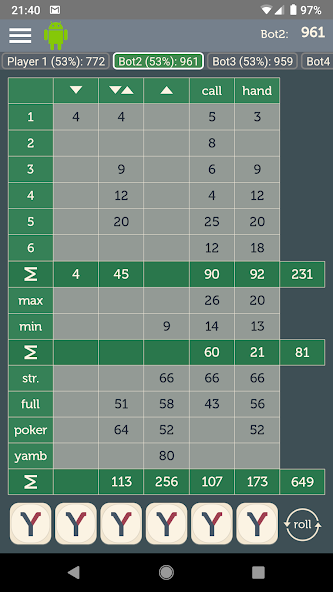 Yahtzee (Yamb) игра в кости с хорошим интерфейсом
