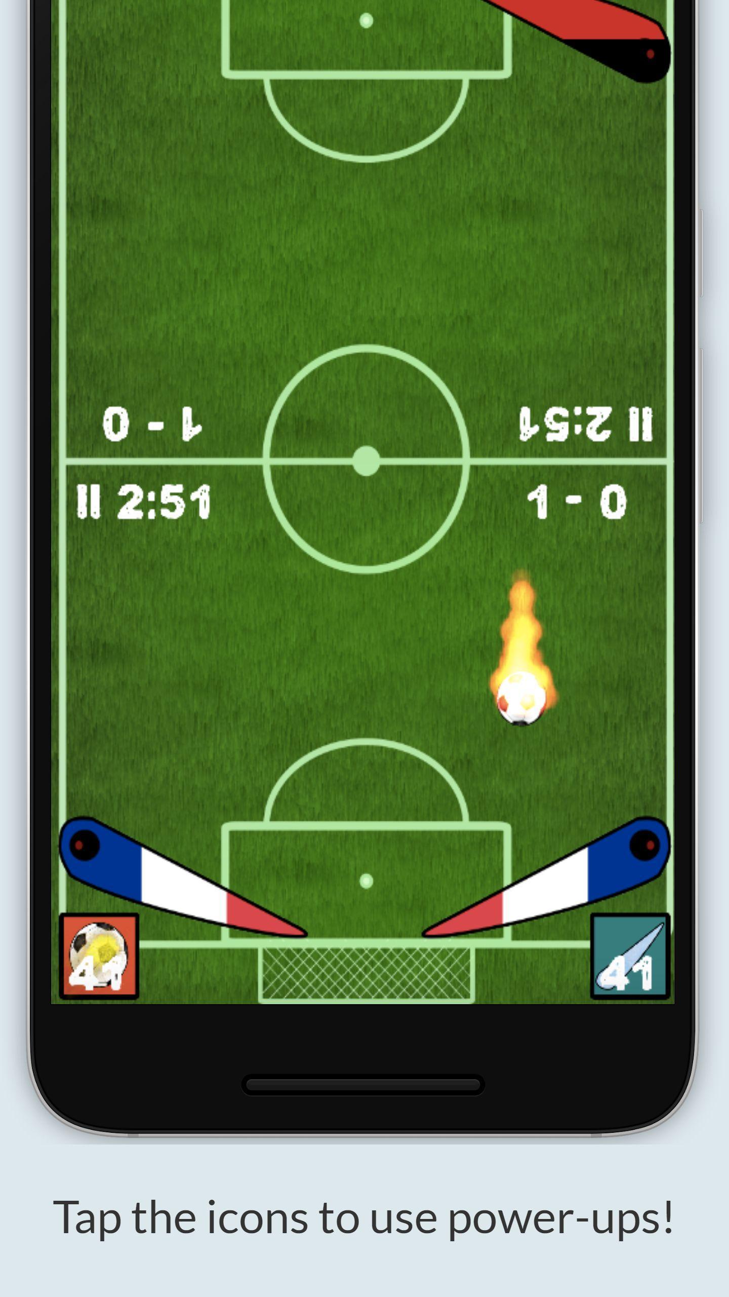 For the first time in FlipperFootball history, take your games to the next level of crazy with POWER UPS! Smash through your opponent's flippers with FireBall, or deny them that last minute goal with a well-timed ForceField.