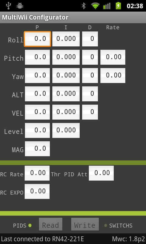 Для использования этого инструмента необходимо иметь ключ Bluetooth для подключения к плате Multiwii и, конечно же, работает программное обеспечение Multiwii.