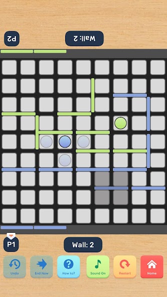 Чтобы выиграть игру, вы должны переместить пешку на противоположный сайт быстрее, чем ваш противник. Тем временем вы можете разместить стену стратегически, чтобы заблокировать своих противников или заблокировать потенциально оскорбительный блок.