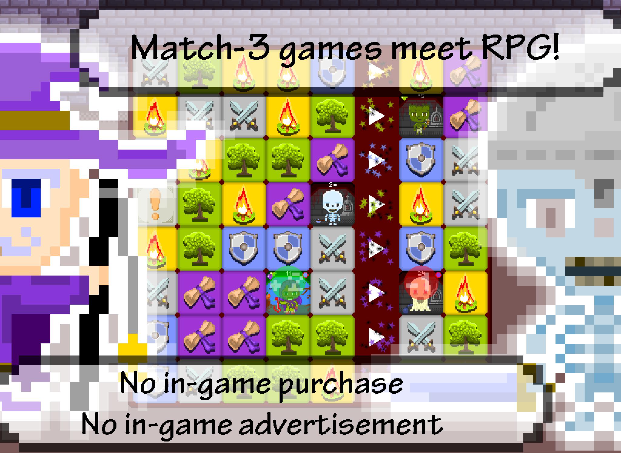 Вы не только играете с доской плитки, но и исследуете саму доску! Каждый раз, когда вы соответствуете 3 идентичным элементам, все персонажи на доске могут двигаться и лицом друг к другу.