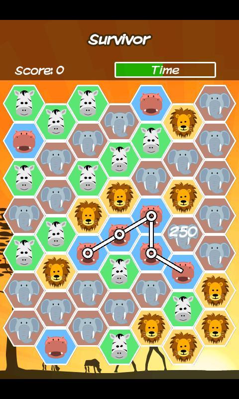 ---> Survivor: Connect animals to get more time. But the time is running up faster when you collect animals! Survive as long as possible to break the highscore.