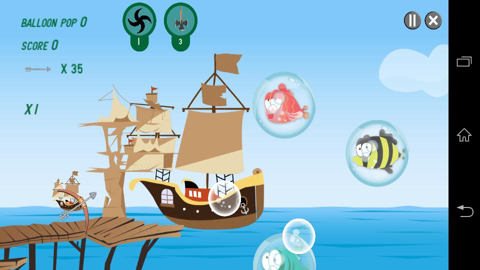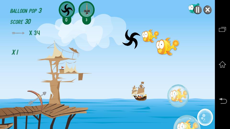 The best fishing game of the year is here. Its time to help your town. The pirates have spelled the sea, all the fish are trapped in the bubble and flying towards the pirates. Hit the bubble trap with arrow and save the fish before its too late.