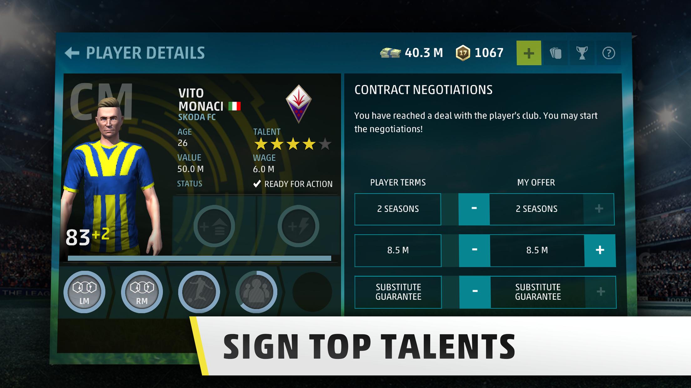 - Scout and sign the top eleven talents before your opponents snap them up