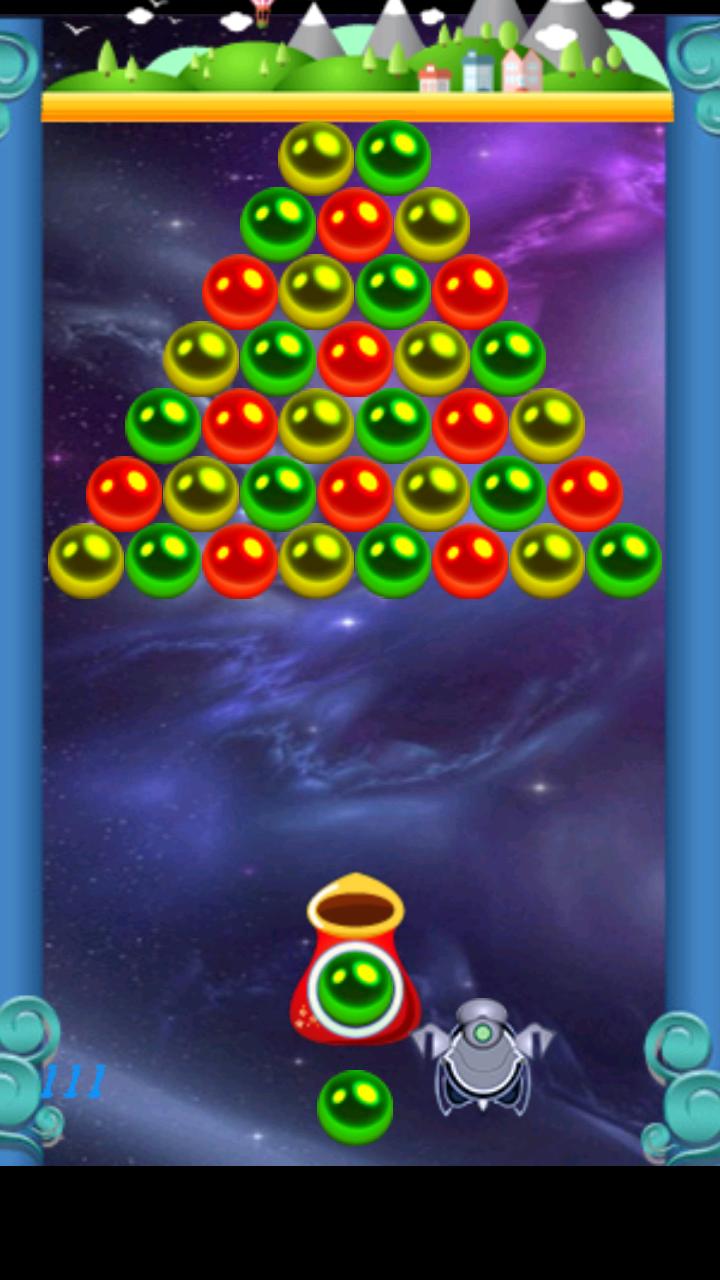 - shoot bubble base on time ,the bubbles will go down, and nonstop, so you quickly and so fast to get many score base time, if you don't die.