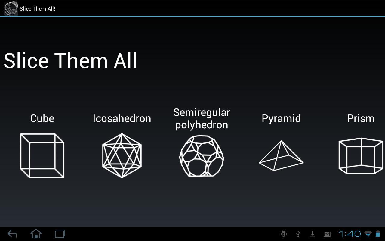 Slice Them All! is a unique interactive 3D encyclopedia of a solid geometry. Ideally suited for education and for entertainment as well.