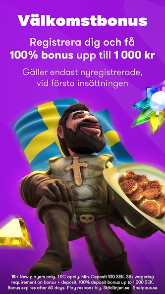 New users can receive a Welcome Bonus that grants a 100% deposit bonus of up to 1000 SEK that they can use for casino slots and live casino games. To activate the bonus, the newcomers must make a first deposit of at least 100 SEK (Terms & Conditions apply). 18+