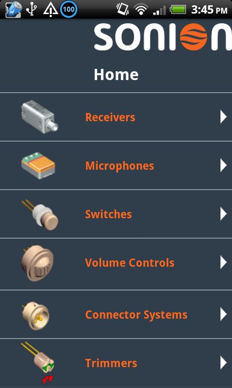 Portfolio of products from Sonion, including balanced armature receivers, high performance electret microphones, telecoils and electromechanical components.