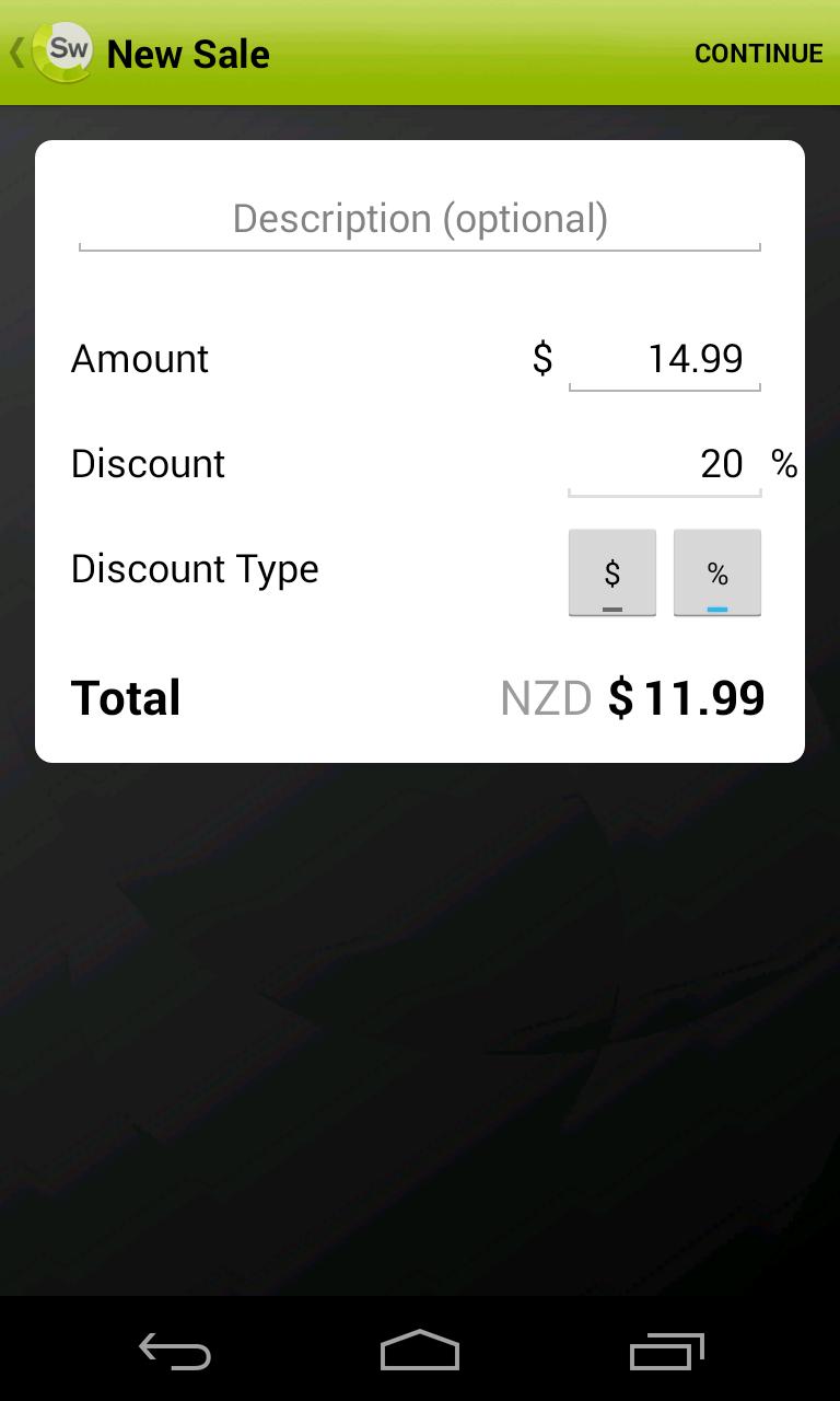 - Add discount. Discount the total amount by percentage or dollar amounts