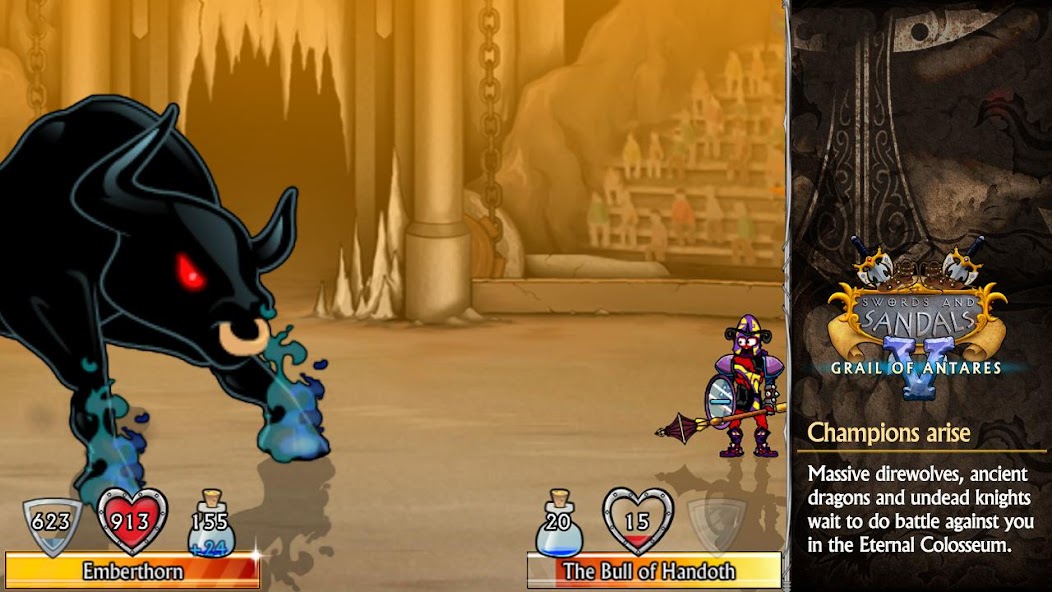 * All new Swords and Sandals Dungeon Crawl game mode: Quick-make a gladiator and explore an endless dungeon, fighting monsters and trying to survive as long as you can. Will you hold the world record for the deepest dungeon level reached?