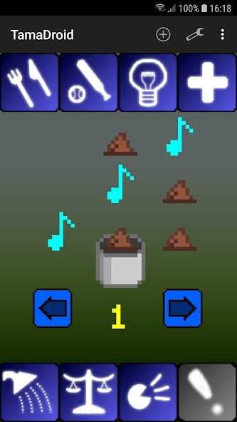 This app is inspired by the old Tamagotchi keychain pets from the 90s. What you do is care for a virtual pet like you would a real one, by taking care of its needs. You will need to feed it, play with it, wash it and discipline it. The buttons surrounding the pet are used to interact with it. As the TamaDroid becomes older it will evolve, and what it turns into depends on how well you care for it. There are a total of 22 evolutions, can you find them all? Tip: Experiment with different levels of happiness, discipline and weight.