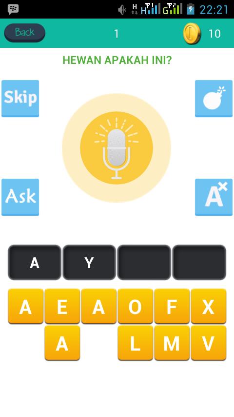 Tebak Suara Hewan game is a game to hone your knowledge, especially children about animal sounds. Not only that, children will also be invited to compile the alphabet of the letters provided to write words from the name of the animal.