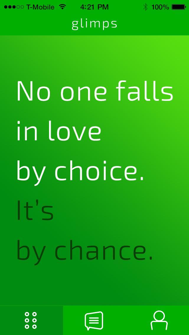 Glimps เชื่อว่าความรักที่แท้จริงนั้นเกิดจากการสื่อสารที่ไม่ใช่คำพูด แสงไฟที่สนุกสนานเหล่านั้นในดวงตาท่าทางของบุคคลวิธีการพูดคุยพลังงานรอยยิ้มหรือแม้แต่น้ำตาให้แน่ใจว่าภาพที่ชัดเจนและความรู้สึกกับคนอื่น เราคิดถึงสิ่งนี้ด้วยการออกเดทออนไลน์ในขณะที่ความรู้สึกนั้นสำคัญมากเมื่อเลือกความสัมพันธ์!