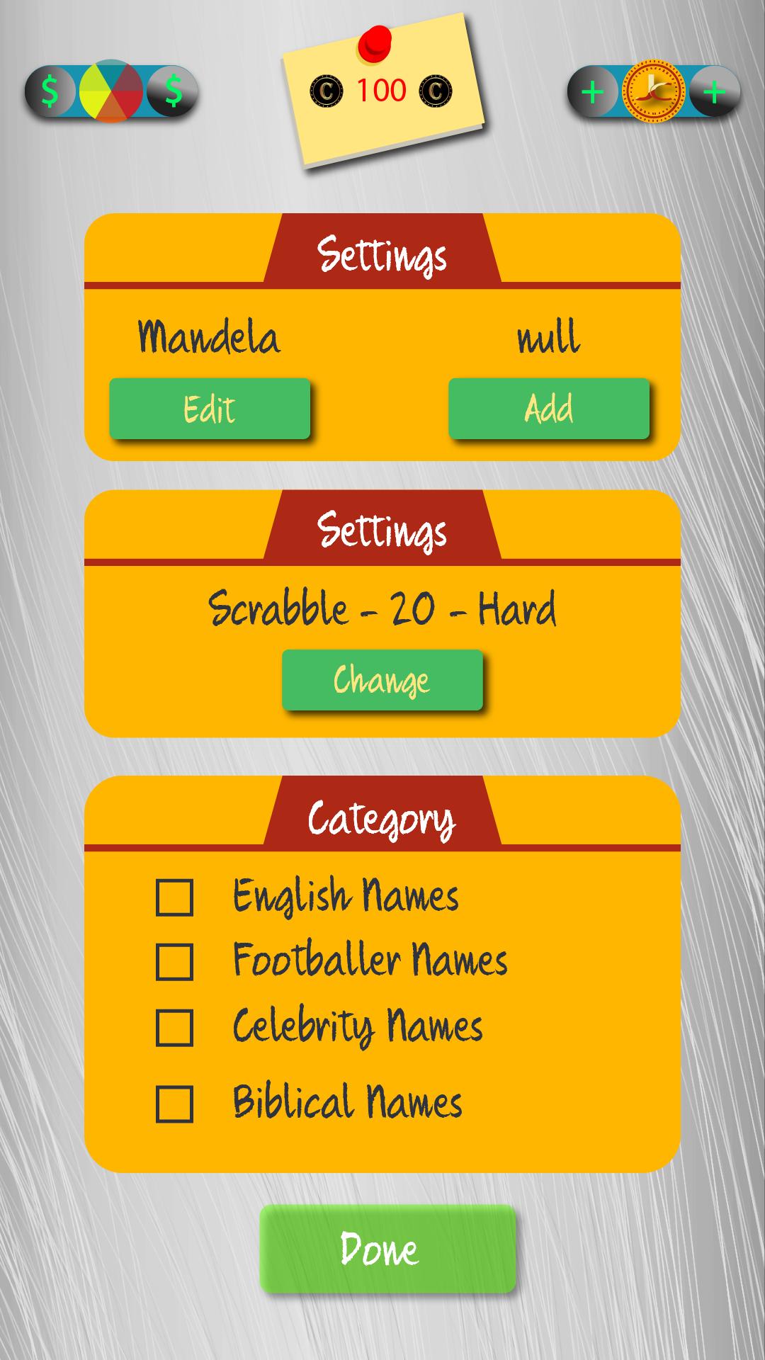 เกมดังกล่าวรวมระบบการให้คะแนน Scrabble ซึ่งตัวอักษรที่แตกต่างกันในตัวอักษรมีคะแนนแตกต่างกันขึ้นอยู่กับความถี่ของการปรากฏตัวในชื่อ ตัวอย่างเช่นสระมีคะแนน 1 คะแนนในขณะที่พยัญชนะเช่น 'J' มีคะแนน 8 คะแนน