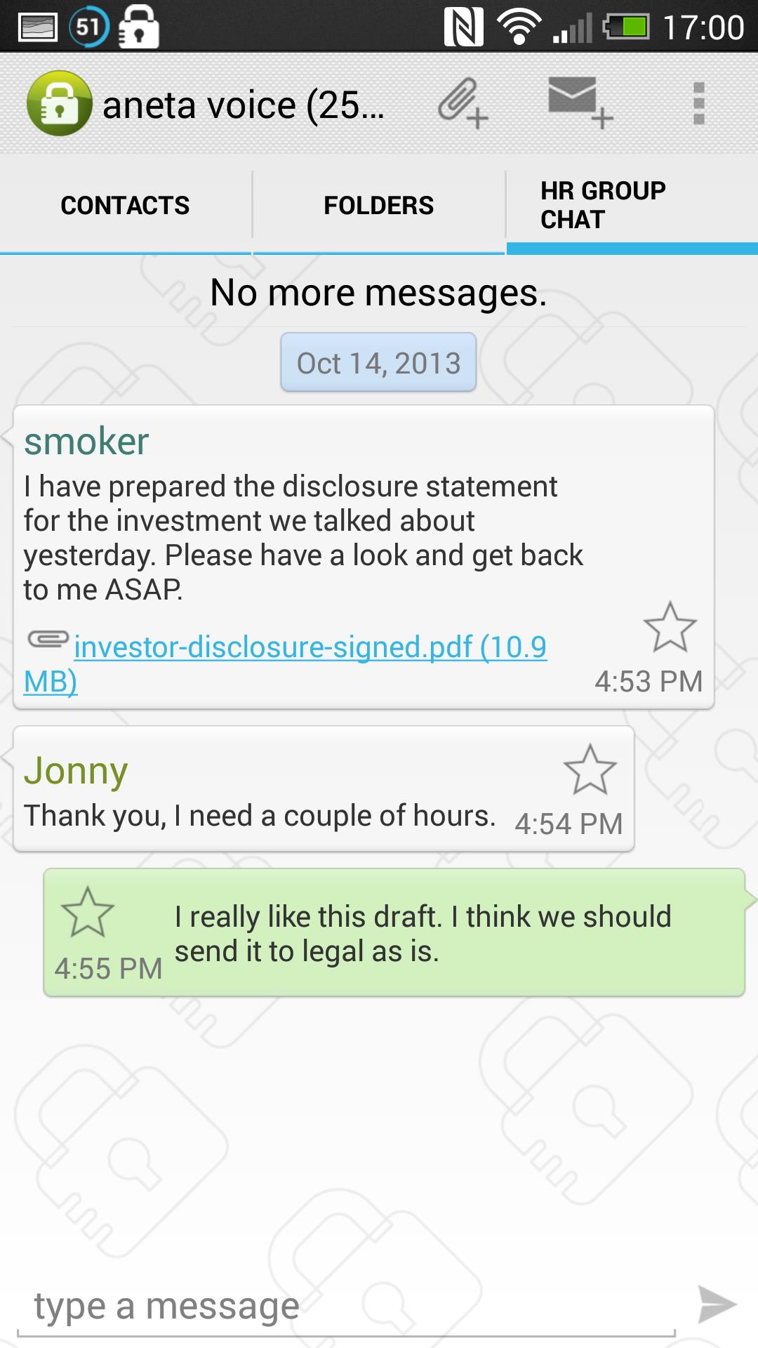 ตอบ: SaluSafe รวมถึงการส่งข้อความโต้ตอบแบบโต้ตอบส่วนบุคคลและกลุ่มที่เข้ารหัสอย่างเต็มที่รวมถึงแอพมือถือเฉพาะ การเข้ารหัสเป็นแบบ end-to-end และไม่ได้ทำบนเว็บเซิร์ฟเวอร์