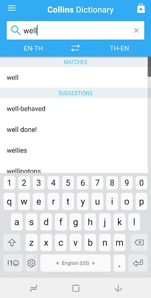 • Search autocomplete helps find words quickly by displaying predictions as you type