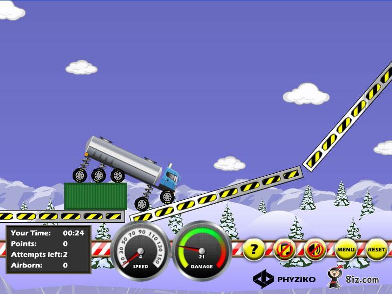 The Truck Driver is a truck driving game with great physics, interesting and long tracks and all kind of trucks. Your goal is to reach the finish line in given time without destroying your truck.You will drive 16 totally unique trucks in 24 levels. Drive through valley, jungle, city day and night, ice peaks, and desert.