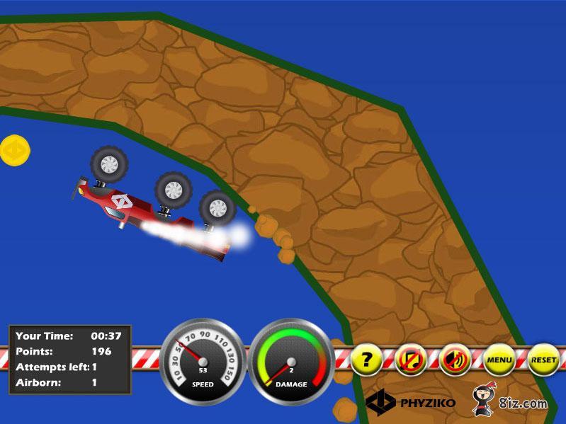 In this game you can make front and back flips, jumps, drive through loops, collect extra points, achieve medals, drive through very rough terrains…