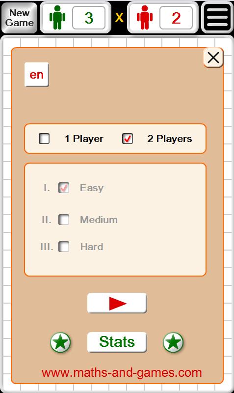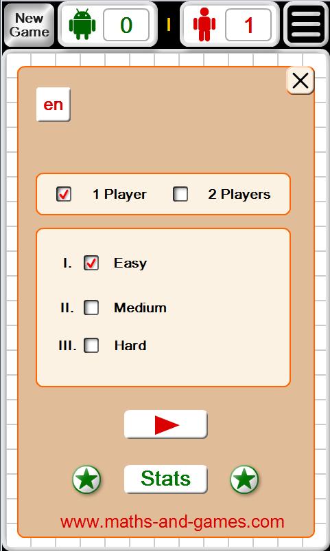 - game against machine intelligence with three levels of complexity;