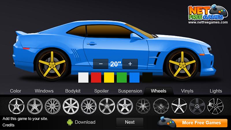 In this tuning game you can customize a Camaron '10, changing parts like body kits, spoilers, wheels, lights, colors, windows, etc.