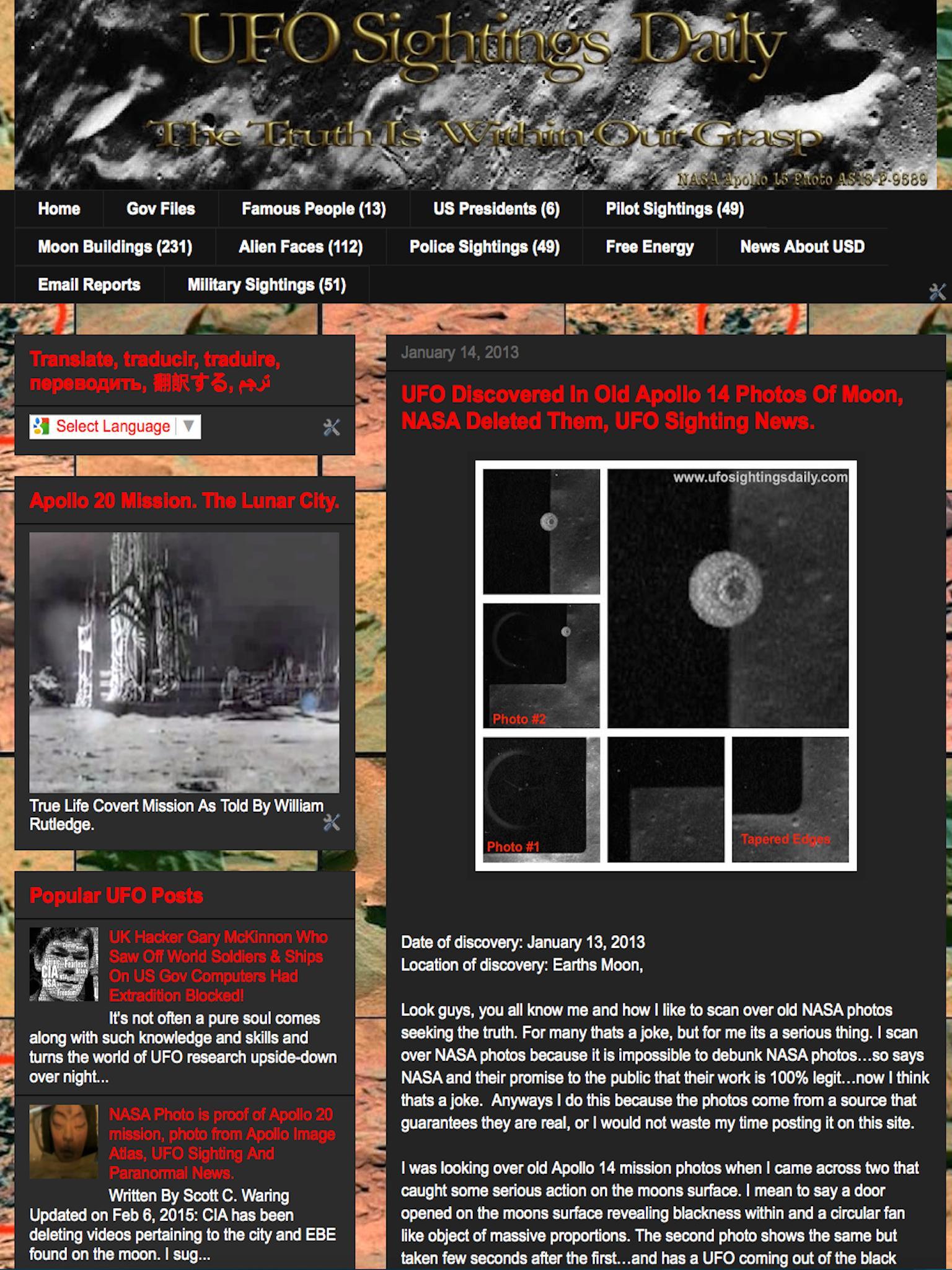 UFO Sightings Daily and a game where you have a single star fighter!