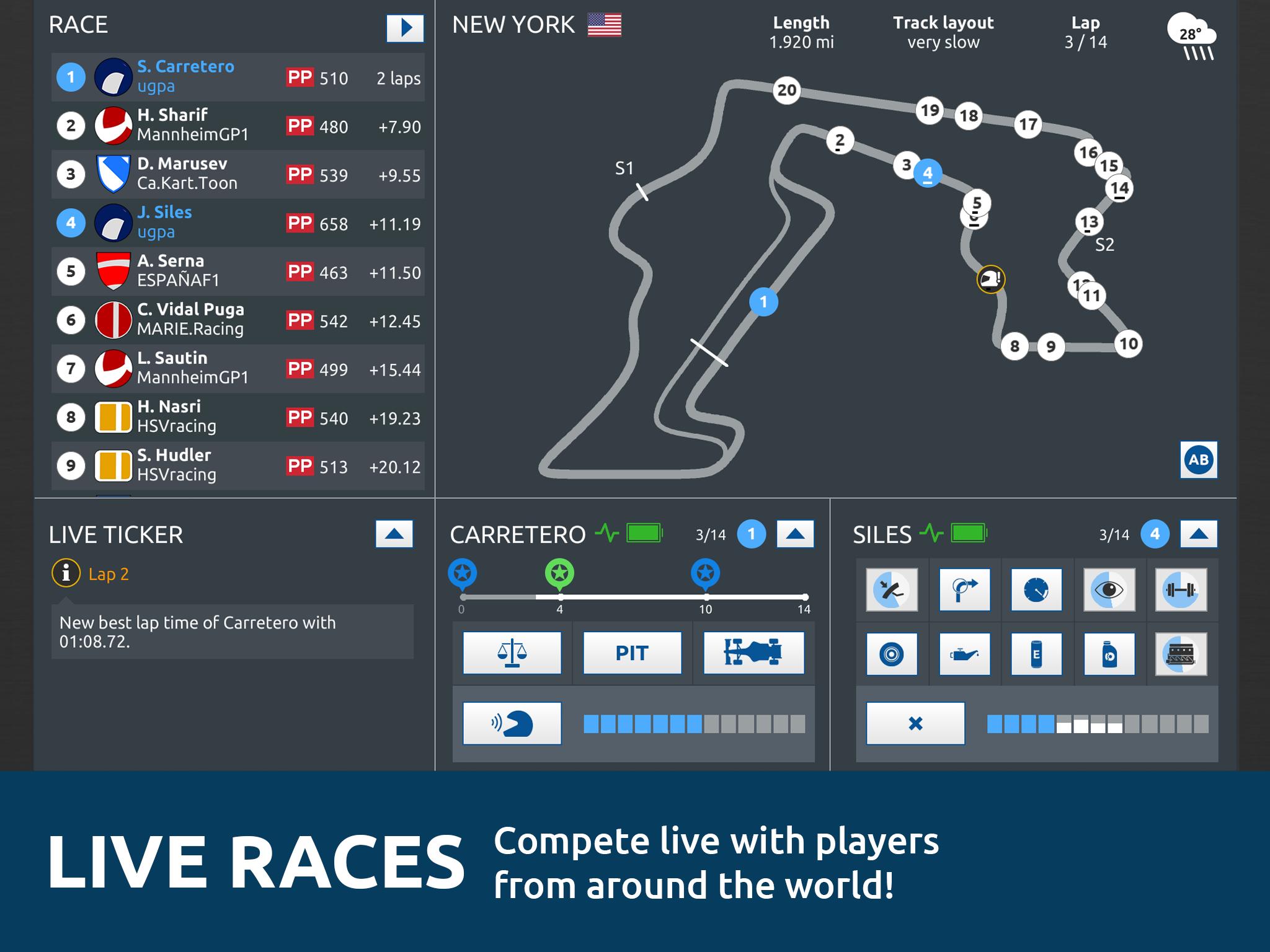 * Real time interaction – Adjust your pit stop strategy, tyre selection and timing during the race