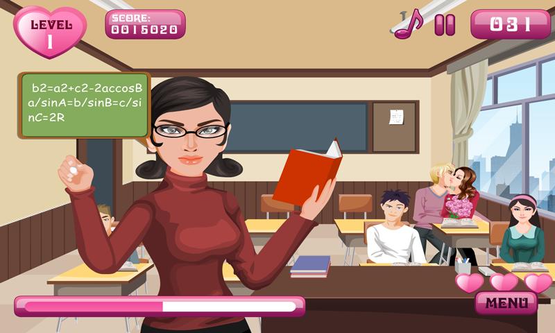 In this game you help a pair of lovers kiss each others, but they don't want anybody to see them. So do your best to make them kiss when nobody's watching! If they're caught, a heart is taken from your score. Once you've lost all your hearts, you'll have to start all over again. Try to get as far as possible in this exciting Valentine game!
