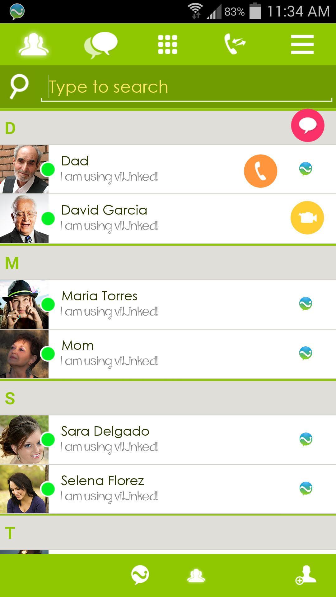 viLinked provides you FREE TEXTS MESSAGES, FREE CALLS (Voice and Video) with any kind of attachment (video, photo, audio, location) to other viLinked users.